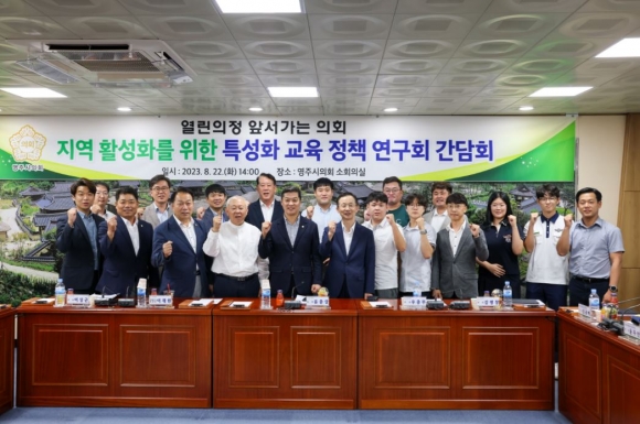 영주시의회 지역 활성화를 위한 특성화 교육 정책 연구회(유충상 대표의원(국민의힘, 나선거구, 하망동·영주1·2동)·이재원 의원·우충무 의원·이상근 의원·김병창 의원)는 지난 8월 22일 영주시의회 소회의실에서 ‘영주시의회 지역 활성화를 위한 특성화 교육 정책 연구회 간담회’를 개최했다.
