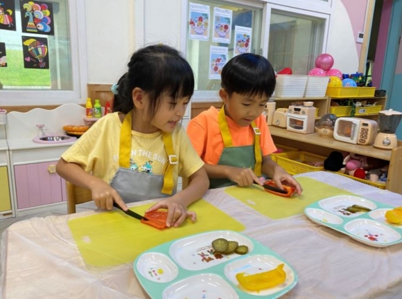 오늘 만들 메뉴인 토르티아롤에 대한 소개를 들은 후 요리활동이 시작되었다. 앞치마와 두건을 맨 유아들은 오감으로 재료를 탐색하며 즐거움을 느끼고, 요리 도구를 안전히 사용하며 토르티아롤을 만들었다. 자신이 자른 식재료를 넣어 만든 토르티아롤을 먹는 과정에서 유아들이 평소 꺼려하던 식재료도 곧잘 먹는 모습을 발견할 수 있었다.