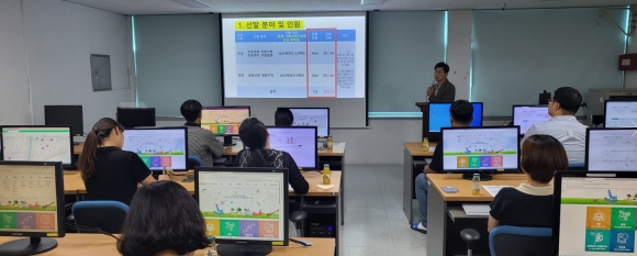 이날 연수에 참여한 교사들은 강사의 안내에 따라 컴퓨터실에서 직접 GED시스템을 사용해보며 메뉴별 구성 현황을 파악하고, 업무 처리 절차를 따라해 보는 등 다소 복잡하고 어려운 교사 관찰‧추천 업무 흐름을 파악하는 데에 노력을 기울였다.