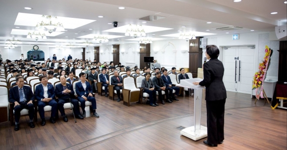 이 자리에 참석한 경상북도의원 박선하 부위원장, 조용진 부위원장, 경상북도 새마을부녀회 김옥순 회장, 김천시 김윤수 행정지원국장은 깊은 축하의 마음을 담은 축사를 전하며 새마을리더로 발전하게 된 수료생들에게 아낌없는 많은 박수를 보냈다. |