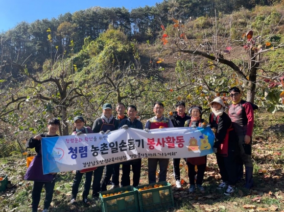 산청교육지원청(교육장 김덕현) 직원들은 7일 산청군 삼장면에 위치한 곶감원료감 재배 농가에서 봉사활동을 실시하였다.