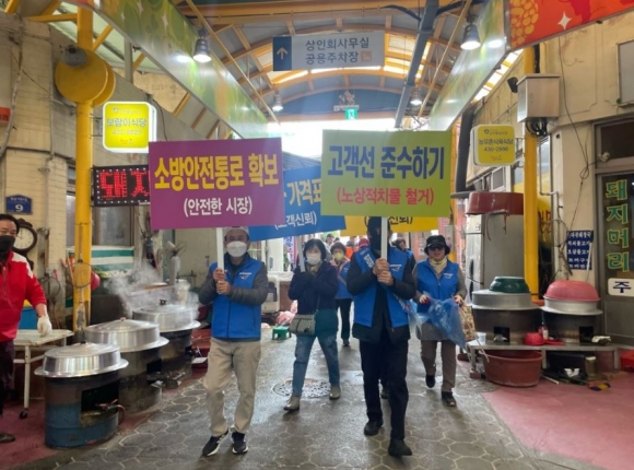 이 운동은 9월부터 시작한 ‘황금시장 살리기’ 장기계획으로 4번째 운동이다. 이날 참여한 회원들은 5대 핵심 실천 과제인 고객선 준수하기, 원산지와 가격표시, 소방도로 확보, 상인조직 활성화, 친절·위생·청결한 황금시장 만들기 등의 내용을 담은 홍보 피켓과 어깨띠를 두르고 전통시장 살리기에 목소리를 높였다.
