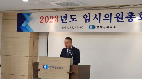 김천상공회의소(회장 안용우)는 지난 12월 13일 오전 11시 2층 중회의실에서 「2023년도 임시의원총회」를 개최했다.