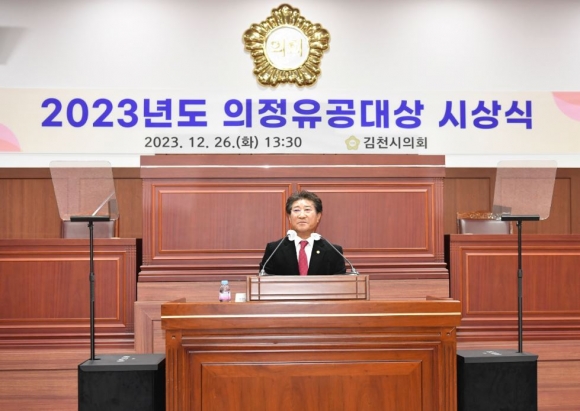 김천시의회(의장 이명기)는 12월 26일 오후 김천시의회 3층 본회의장에서 2023년 의정유공대상 시상식을 개최했다.