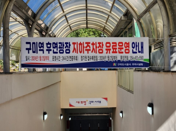 구미도시공사는 2024년 1월 2일부터 구미역 후면광장 지하주차장을 유료 운영한다.