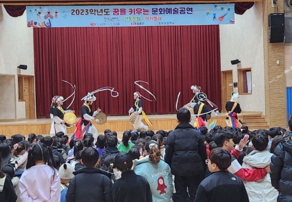 초곡초등학교(교장 조이제)는 2023학년도 마무리 활동으로 3일에 걸쳐 전교생을 대상으로 한 문화 예술 3종 세트 공연이 이루어졌다.
