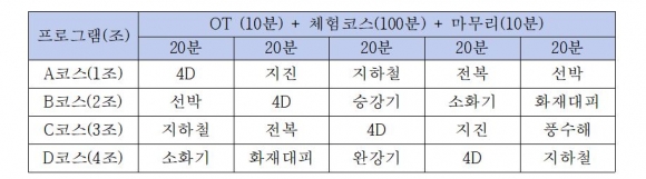 가족안전체험 프로그램은 4개의 코스로 진행되며 예약 신청 시 4개 코스 중 1개 코스를 선택하면 된다.