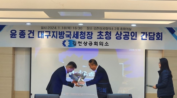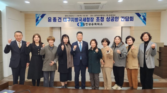 김천상공회의소(회장 안용우)는 지난 1월 18일 오후 4시 30분 본회의소 2층 중회의실에서「윤종건 대구지방국세청장 초청 간담회」를 개최했다.