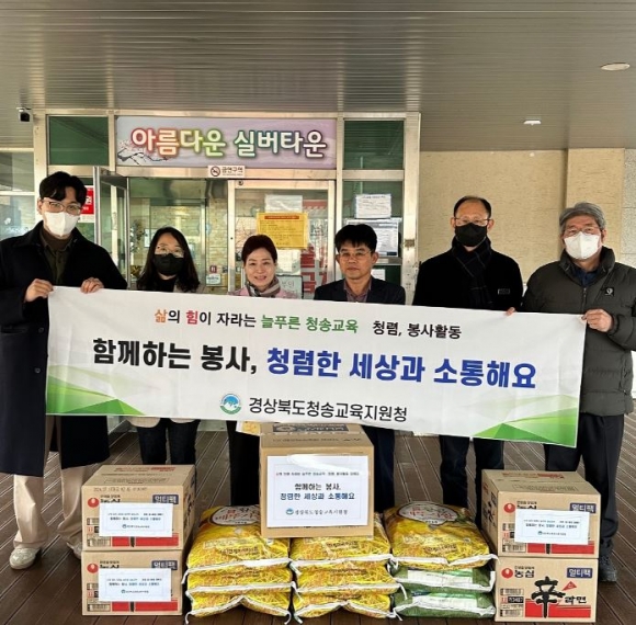 경상북도청송교육지원청(교육장 이호경)은 설 명절을 앞두고 2월 6일(화) 청송군에 위치한 노인요양시설 2곳(아름다운 실버타운, 태양의 집)을 방문해 위문품을 전달했다.