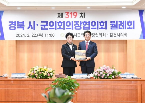 김천시의회(의장 이명기)는 22일 김천시문화예술회관에서 경북시군의회의장협의회 제319차 정기 월례회를 개최했다.