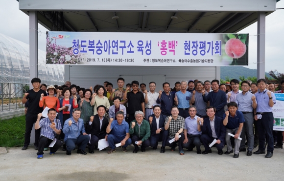 [밝은미래신문=뉴스팀]경상북도농업기술원은 7월 18일(목), 청도복숭아연구소에서 육성한 신품종 ‘홍백’에 대한 현장평가회를 개최했다.