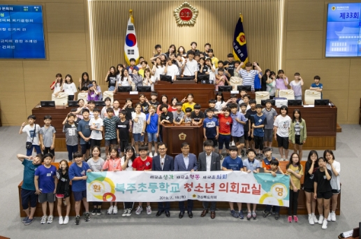 [밝은미래신문=뉴스팀]경상북도의회(의장 장경식)는 7월 18일(목) 10:00 도의회 본회의장에서 안동 복주초등학교(교장 류기정) 6학년 학생 92명을 대상으로 제33회 경상북도의회 청소년 의회교실을 개최했다.