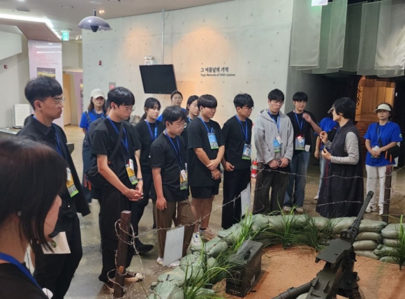 ○ 영동교육지원청(교육장 손태규)은 23일부터 2박 3일의 일정으로 노근리평화공원과 영동 일대에서 2024. 상호존중 문화교류 프로그램을 진행한다. ○ 2024. 상호존중 문화교류 프로그램은 제주와 영동의 지역적 아픔을 공유하고 성찰하는 가운데 평화의 의미를 깊이 새기며 서로를 존중하는 방법을 찾아가는 프로그램이다. ○ 영동과 제주 학생 40여명은 노근리평화공원 기념관과 쌍굴다리를 견학하며 노근리 사건을 접하고, 참여형 평화ㆍ인권 워크숍을 통해 평화와 상호존중의 의미를 생각해보는 기회를 갖는다. ○ 또한, 난계국악단의 국악 공연과 국악체험촌의 악기 체험을 통해 국악의 고장 영동을 경험한다. 같은 시기에 영동하상둔치에서 진행되고 있는 영동와인축제, 희망복지박람회도 함께 참여함으로써 영동의 문화를 직접 체험한다. ○ 영동교육지원청 손태규 교육장은 ‘영동과 제주의 학생들이 노근리사건의 교훈을 통해 평화로운 사회를 만들기를 소망하며, 다양한 문화 체험을 통해 작지만 큰 고장 영동을 느낄 수 있길 바란다’라고 말했다. |