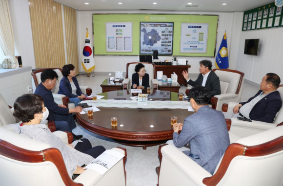 ᥵ 상주시의회(의장 안경숙)는 3일 의장실에서 상주시의회와 sk머티리얼즈 그룹포틴 관계자로부터 사업 진행에 대한 현황을 보고받는 시간을 가졌다.