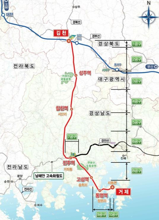 남부내륙철도 건설사업은 김천에서 거제까지 178㎞ 구간에 철도를 신설하는 사업으로 완공 시 김천역에서 서울역까지 1시간 10분, 김천역에서 거제까지는 1시간 30분 만에 고속열차로 이동할 수 있어, 김천시 관광 활성화 및 지역발전에 크게 기여할 것으로 기대된다.