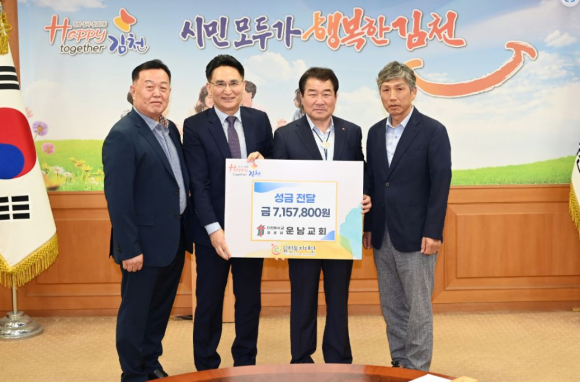 김천복지재단(이사장 김충섭)은 지난 7일 운남교회(담임목사 장영운)로부터 성금 715만 원을 전달받았다고 밝혔다.