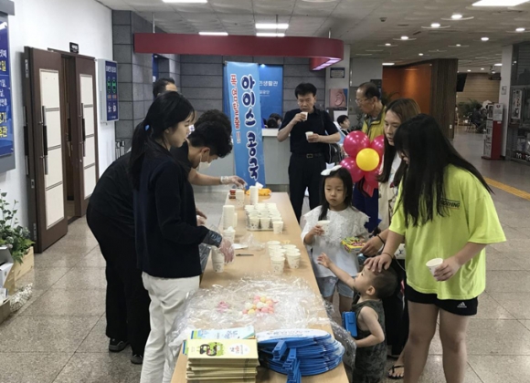 올림픽기념국민생활관에서 본격적인 더위에 대비하여 방문고객을 대상으로 1층 로비에서 아이스콩국과 전통떡을 무료로 나누어주는 이색 여름나기 행사를 개최했다.