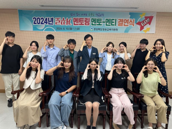 경상북도청송교육지원청(교육장 신덕섭)은 10일 관리자 멘티 3명(교육장 등)과 2024년 신규, 저연차 공무원 멘토 14명(교사 6명, 일반직 8명)이 세대·직급 간 다양성을 존중하고 소통하는 조직문화 조성을 위한‘거꾸로 멘토링 결연식’을 개최하였다.