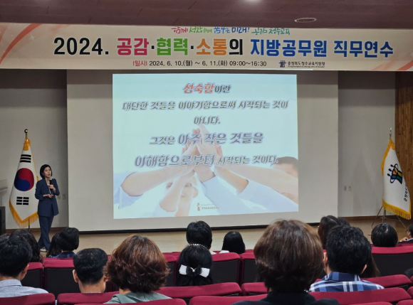 청주교육지원청은(교육장 손기준) 관내 지방공무원 약 370명을 대상으로 10일(월), 11일(화) 2일간 공감·협력·소통의 직무연수를 실시했다.
