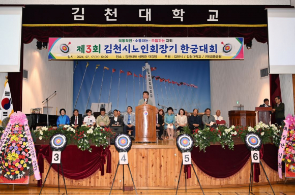 대한노인회 김천시지회(지회장 이부화)는 지난 17일 김천대학교 생명관 대강당에서 선수 및 내빈 300여명이 참석한 가운데 제3회 김천시 지회장기 한궁대회를 성황리에 개최했다.