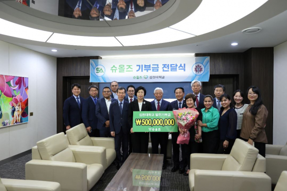 이번 기부는 슈올즈의 사회적 책임 활동의 일환으로, 김천대학교가 국가 발전에 기여할 수 있도록 지속적으로 지원할 계획임을 강조하였다. |