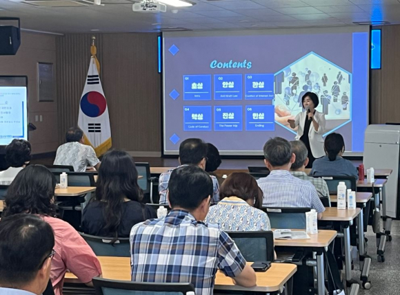 합천교육지원청(교육장 김갑진)은 7월30일, 합천교육지원청 대회의실에서 학교장, 행동강령책임관, 행정실장 등 120여 명을 대상으로 반부패․청렴 교육을 실시하였다.