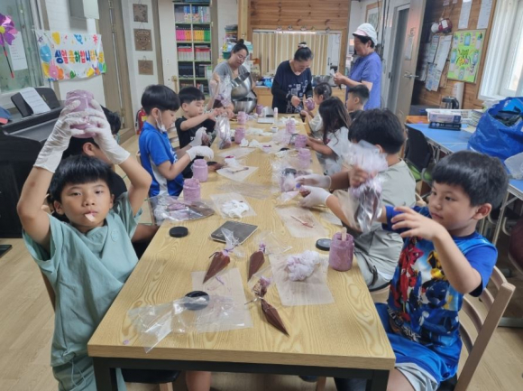 □ 영동교육지원청(교육장 손태규)이 방학을 맞아 학교밖에서 늘봄학교의 일환으로 지역아동센터와 함께 하는 지역연계 돌봄교실이 운영되고 있다고 밝혔다. 늘봄학교는 학교를 중심으로 학교안에서 이루어지는 돌봄과 방과후가 기본으로, 영동은 지역 특성상 학교밖 지역아동센터가 하교후 돌봄을 담당하는 경우가 많아 영동교육지원청은 학교밖 연계를 위해 지역연계 돌봄교실을 별도로 운영한다. □ 영동군은 타 시군에 비해 농임업 종사자가 많고 지리적 면적이 넓은 특성이 있어 농번기 시즌에 학부모가 자녀 하교후 아동센터에 맡기는 시간이 길어진다. 이에 따라 학교와 지역아동센터 기관 협력이 아동 돌봄에 중요한 역할을 담당하고 있다. 영동교육지원청은 지역연계 돌봄교실을 통해 지역아동센터의 프로그램 운영을 함께 하면서 학교와 지역사회의 담을 낮추고 지역아동센터를 담당하는 영동군 지자체와 학교 늘봄교실을 관할하는 교육청의 신뢰관계 형성에 애쓰고 있다. □ 지역연계 돌봄교실은 영동행복교육지구 사업을 통해 발굴된 지역 주민 마을교육활동가가 다양한 수업을 진행한다. 임업이 발달한 지역 특성에 따라 이나영(숲해설가), 수도권에서 영동으로 은퇴해 수학 프로젝트를 진행하는 손근섭(퇴직 학교장), 전래놀이와 동화읽기 김미란(영동문화컨텐츠)씨 등이 지역아동센터와 함께 10회기 내외 다양한 활동을 예정하고 있다. □ 20일 양강면에서 곶감 디저트를 파는 남혜영(카페 해영 대표) 마을교육활동가가 양강묵정지역아동센터 19명 아이들을 대상으로 진행했다. 남혜영 활동가는 “아동센터는 오븐이 없는 등 수업 여건이 쉽지 않아, 노오븐 쿠키 커리큘럼을 따로 만들었다. 많은 어려움이 있지만, 지역 아이들과 지역 특산물을 활용한 쿠킹 활동을 할 수 있어서 즐거웠다”라고 전했다. 지역연계 돌봄교실은 6월에 시작해 11월까지 진행 예정으로, 여름방학을 맞아 지역아동센터에 오래 머물러야 하는 아이들의 활동을 집중적으로 지원할 예정이다. □ 영동교육지원청 손태규 교육장은 “지역사회의 다양한 자원을 학교밖에서도 늘봄학교 지역연계 돌봄교실을 활용하고자 한다. 학교와 지역의 협력이 이러한 활동을 통해 증진되기를 기대한다”라고 전했다. |