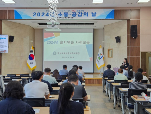 고령교육지원청(교육장 김호상)은 8월 5일(월) 3층 대가야홀에서 고령교육지원청 전 직원을 대상으로 2024년 을지연습 사전 교육을 실시하였다.