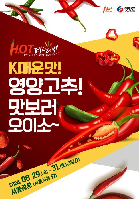 영양군(군수 오도창)은 「2024 영양고추 H.O.T Festival」이 8월 29일부터 8월 31일까지 3일간 대한민국의 심장인 서울광장에서 개최하기 위한 준비가 마무리되어 간다고 밝혔다.