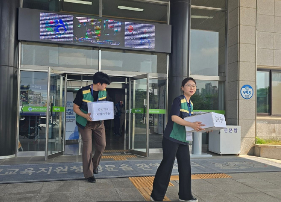 이날 담당 직원들은 홍성교육지원청에서 홍남초등학교로 비밀문서를 반출하는 훈련을 실시했다.