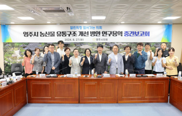 영주시의회 의원연구단체인 ‘농산물 유통구조 개선 연구회’(대표의원 손성호)는 27일 의회 소회의실에서 ‘영주시 농산물 유통구조 개선 방안 연구용역’중간보고회를 개최했다.