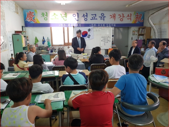 [밝은미래신문=뉴스팀]경주시 성균관 유도회 경주지부 강동지회(지회장 권혁근)는 24일 지역 초등학생들을 대상으로 하는 ‘2019년도 하계청소년 인성교육’ 개강식을 가졌다.