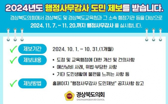 경상북도의회,“행정사무감사 도민제보를 받습니다”
