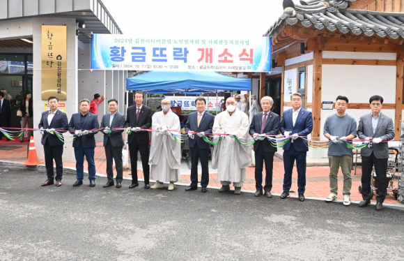 김천시(시장 김충섭)는 지난 7일 김천시니어클럽(관장 도신스님)에서 노인일자리 시장형 사업장인 "황금뜨락" 개소식을 개최했다고 밝혔다.