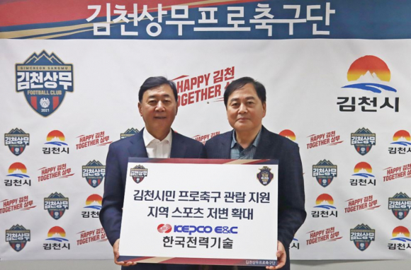 이에 배낙호 대표는 “지역 스포츠 저변 확대를 위한 한국전력기술의 김천상무 홈경기 관람 지원에 감사드린다. 오는 울산전 좋은 경기, 즐거운 경기로 보답하겠다.”라고 화답했다.