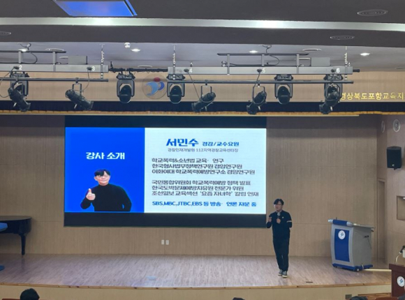 포항교육지원청(교육장 최한용)은 2024. 10. 18.(금) 여울관에서 관내 초․중․고등학교 학교폭력 책임교사 140명을 대상으로 「디지털 범죄 예방을 위한 교원 역량강화 연수」을 실시하였다.