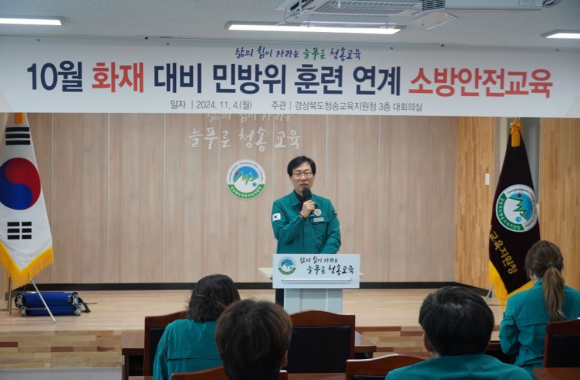 경상북도청송교육지원청(교육장 신덕섭)은 2024년 11월 4일(월) 오후 1시 50분부터 2시간 전 직원을 대상으로 2024년 10월 화재 대비 민방위 훈련을 실시했다.