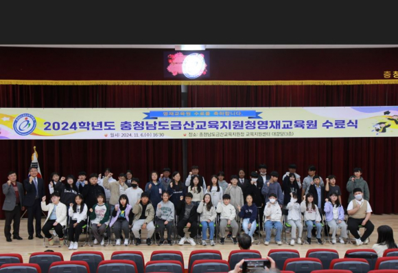 금산교육지원청(교육장 이인원)은 11월 6일 금산교육지원센터 3층 대강당에서 영재교육과정을 이수한 초, 중 4개 학급 44명을 대상으로 2024학년도 금산교육지원청 영재교육원 수료식을 개최했다.