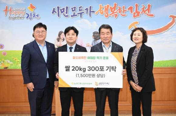 김천복지재단(이사장 김충섭)은 지난 13일 NH농협은행 김천시지부(지부장 박기화)로부터 백미(20kg) 300포(1,500만원 상당)를 전달받았다고 밝혔다.