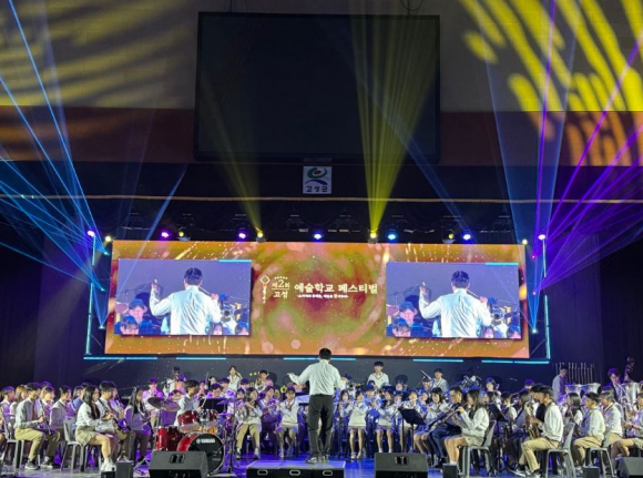 고성교육지원청(교육장 이중화)은 20일 고성군국민체육센터에서 ‘제2회 고성 예술학교 페스티벌’을 개최했다. 이번 페스티벌은 2024년 교육부 사업으로 운영되었던 ‘2024.농어촌 문화예술사업’의 지역성과발표회와 ‘고성 학교 오케스트라’의 페스티벌이 함께 펼쳐나간 무대로서, 11개 학교의 17개 팀, 총 500여명의 학생들이 참여하여 댄스, 난타, 뮤지컬, 밴드, 합창, 윈드오케스트라, 국악 오케스트라 등 다채로운 공연을 선보였다. 또한, 같은 장소에서 4개 학교의 학생 및 교원, 예술강사 등은 웹툰, 공예, 서예, 도자기, 회화 등 120여 점의 작품을 전시하며 예술적 감각과 창의력을 뽐냈다.