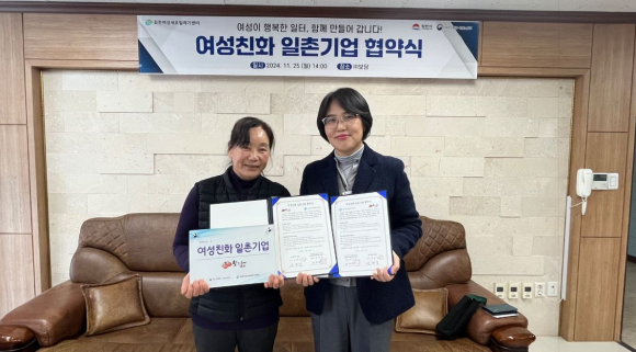 김천여성새로일하기센터에서는 협약 체결 첫 일정으로 11월 25일 ㈜보담에서 상호 협약서 교환 및 여성친화 일촌기업 인증 현판을 전달했다. 이번 협약은 11월 25일부터 12월 9일까지 진행되며, 참여 기업을 직접 방문해 개별 협약식을 갖는 방식으로 진행된다.