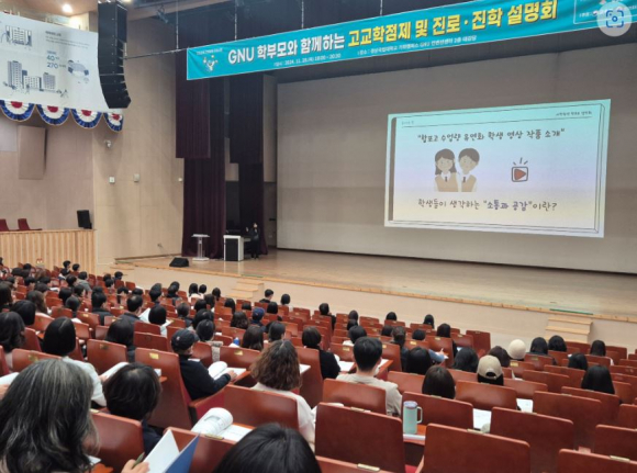 사천교육지원청(교육장 송숙경)은 11월 28일(목) 경상국립대학교 컨벤션센터 대강의실에서 사천·진주 지역 중·고등학교 학부모 300여 명을 대상으로 ‘경상국립대학교 GNU와 함께하는 고교학점제 및 진로 진학 학부모 설명회’를 실시하였다.