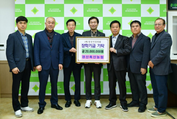 경산시장학회(이사장 조현일)는 29일 경산축산농협(조합장 백운학)이 지역 인재육성을 위한 장학기금 2,000만 원을 기탁했다고 밝혔다.