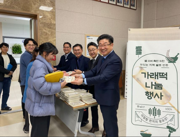 서산교육지원청(성기동 교육장)이 지난달 관내 학교에서 진행한 아침밥 공동캠페인 행사에 이어 2일 지원청 직원들에게 충남 쌀로 만든 가래떡 나눔 행사를 진행하였다.