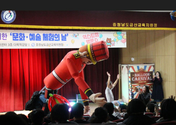 금산교육지원청(교육장 이인원) 특수교육지원센터는 12월 6일(금) 금산 관내 유, 초, 중, 고 특수교육대상학생을 위하여 2024학년도 ‘문화・예술 체험의 날’ 익스트림 벌룬쇼를 진행하였다.