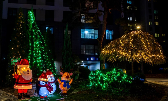 반짝이는 불빛과 섬세한 장식들로 완성된 크리스마스 추리는 매일 저녁 아파트 입구를 작은 축제의 장으로 바꾸어 놓는다. 화려함 속에서도 따뜻함이 느껴지는 이 추리는 산타클로스와 순록, 반짝이는 별빛 장식으로 주민들의 설렘을 더하고 있다. 특히, 아이들은 이곳을 지나며 "크리스마스가 빨리 왔으면 좋겠다"는 순수한 소망을 이야기하고, 어른들은 그 모습을 보며 흐뭇한 미소를 짓는다.