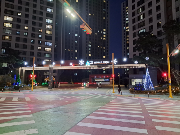 김천시 부곡동에 자리한 센트럴자이 아파트가 다가오는 크리스마스를 맞아 특별한 선물을 준비했다. 관리사무실의 정성 어린 손길로 꾸며진 크리스마스 추리가 정문에 설치되면서 주민들의 마음속에 따뜻한 빛을 밝히고 있다.