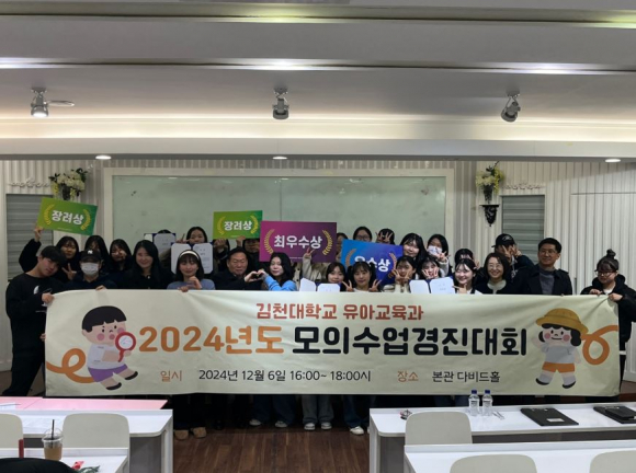 최우수상을 수상한 정** 학생(4학년)은 “이번 대회를 통해 일반 교구가 아닌 미디어를 활용한 수업 방식을 실험하면서 유아 수준에 적합한 다양한 수업 방식을 구현할 수 있음을 깨달았다”라며, “매우 유익하고 의미 있는 경험이었다”라고 소감을 밝혔다. 김천대학교 유아교육과는 앞으로도 예비교사들이 변화하는 교육 환경에 적응할 수 있도록 디지털 교육 역량 강화를 위한 다양한 프로그램을 지속적으로 마련할 계획이다.