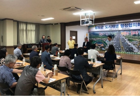 [밝은미래신문=뉴스팀]청도군(군수 이승율)은 지난 23일 청도읍사무소 회의실에서 이승율 청도군수와 도시재생 주민협의체, 유관기관, 관계부서 담당 등 약 40명이참석한 가운데 도시재생 행정협의회를 개최했다.