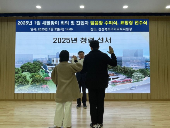 □ 경상북도구미교육지원청(교육장 남성관)은 1월 2일(목), 구미교육지원청 1층 다목적강당에서 전 직원이 참여하는 ‘2025년 반부패 청렴 다짐식’을 개최하여 공직사회 내 청렴윤리 실천 분위기 확산과 정착을 다짐했다.